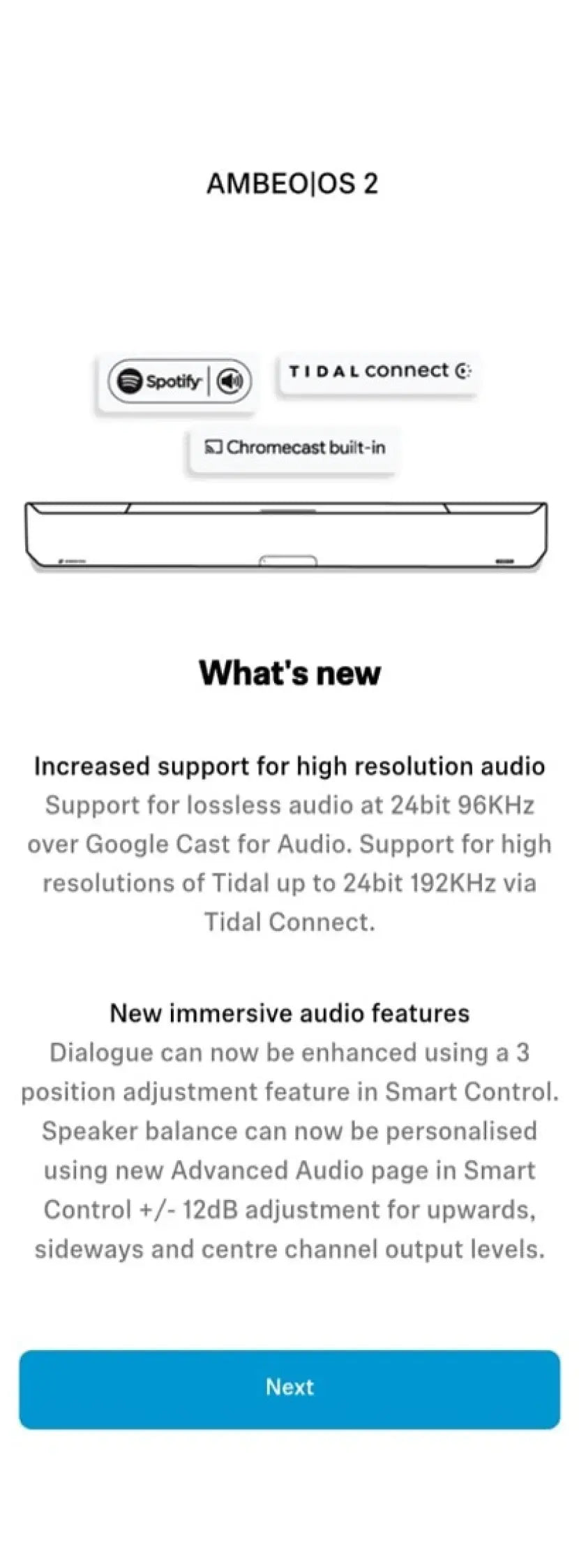 AMBEO OS introduced support for ecosystems such as Airplay2, Chromecast, Spotify Connect and Tidal Connect, along with a smooth user experience via Smart Control app, and a sleek web browser interface.