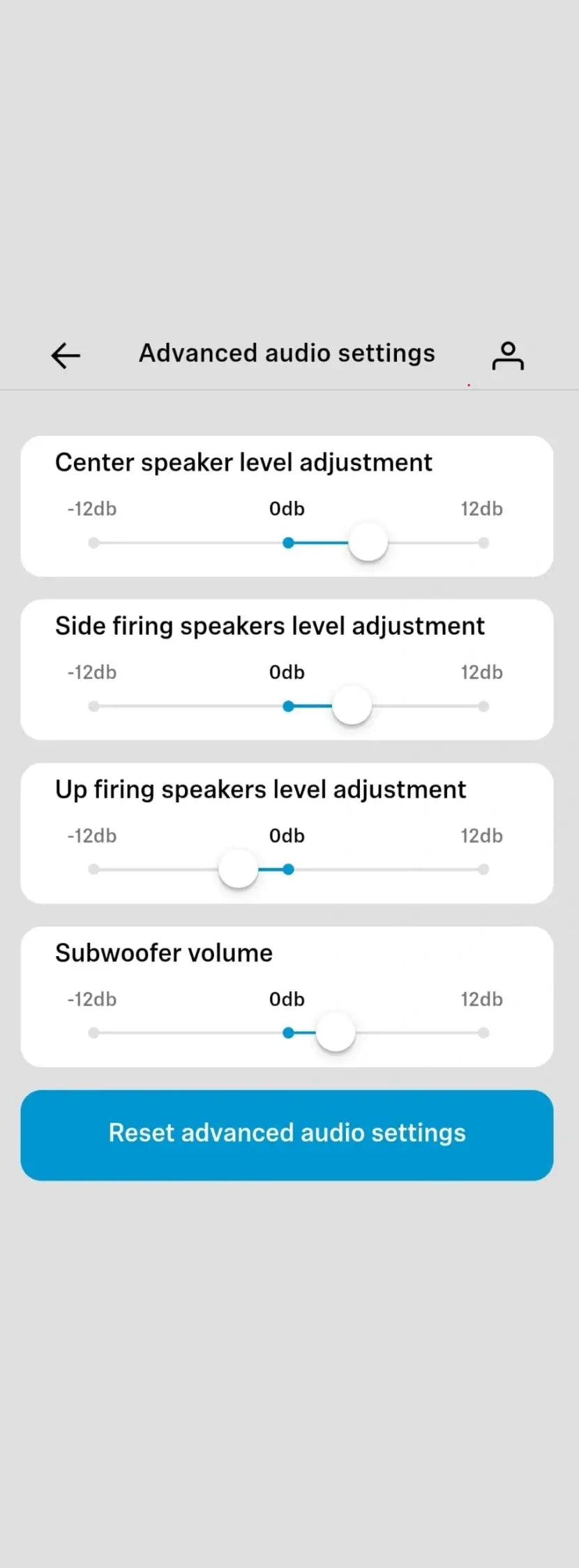 New Advanced Audio page with easy-to-use adjustments of side firing, upwards firing, centre channel and subwoofer gain settings